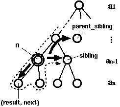 fl が返す関数はその位置と隣の節点 (sibling)、および