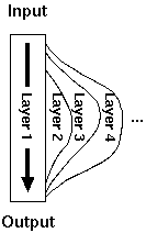 初期のころの GOFAI (Good Old Fashions of AI) では、 複雑な問題はいくつかの適切な「層 (layer)」に縦に 分割して解決するのがよいとされてきた。 たとえば実世界で動く知的なロボットをつくりたいとする。 かりに、そのロボットは3つの層 (モジュール) 「認識」「プランニング」「動作」に 分けるとしよう。すると研究者はそのロボットの各モジュール (モータ制御とか、画像認識とか) を完璧にしようと努力することになる。