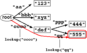 locate the value corresponding to a given key. The lookup is